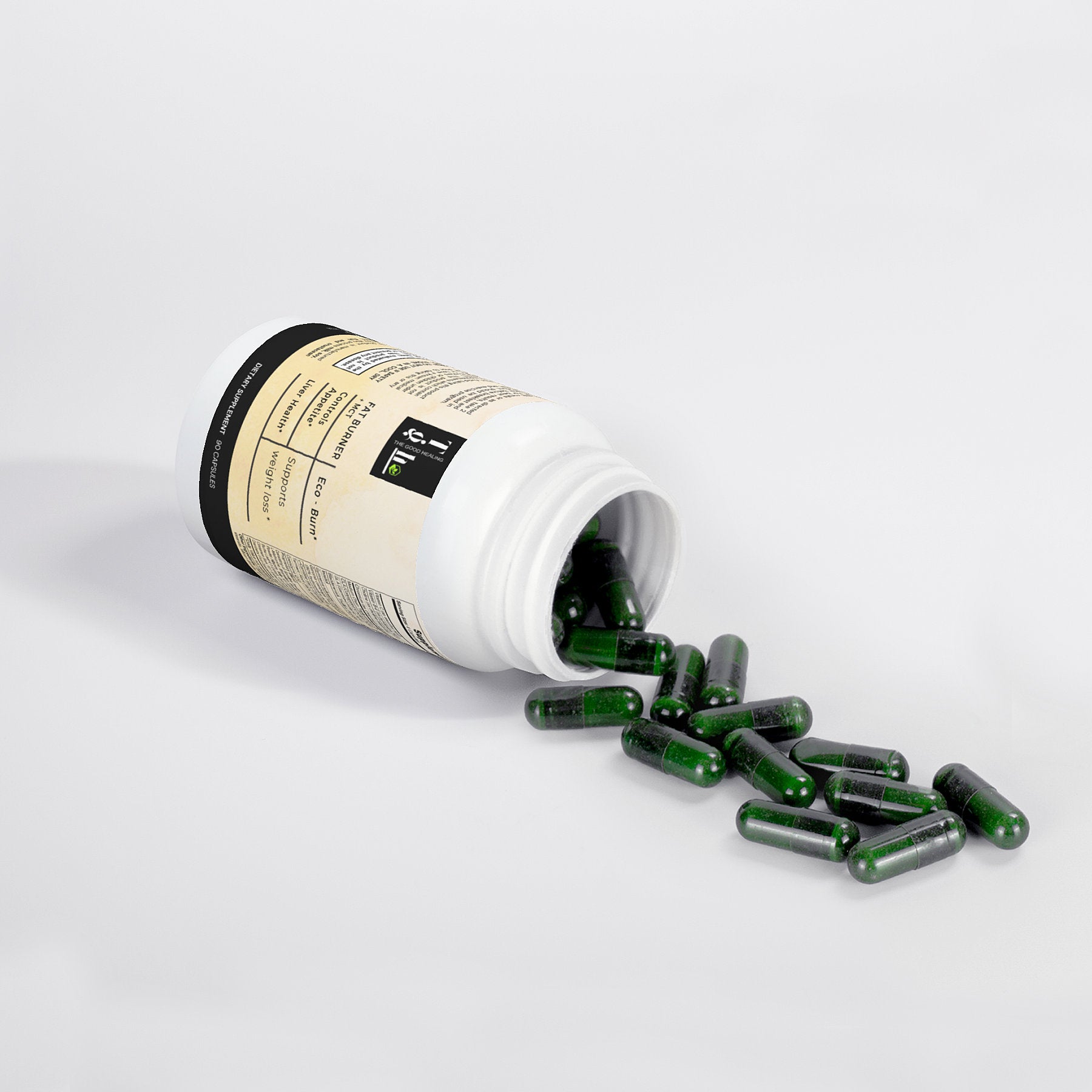Ingredients: Vitamin C (as acerbic acid), Vitamin B6 (as Pyridoxine HCL), Choline (as choline bitartrate), Chromium (as chromium polynicotinate), Medium Chain Triglycerides Oil, CLA (Conjugated Linoleic Acid), GLA (Gamma-Linolenic Acid), Bladderwrack Thallus Powder, Inositol, Gymnema Sylvestre Leaf (25% Extract), Garcinia Cambogia Fruit Extract (50% hydroxycitric acid), L-Carnitine (as L-Carnitine Tartrate), Turmeric Root (95% extract), Coenzyme Q10, Proprietary Blend (Spirulina Powder, L-Phenylalanine, L-Tyrosine, L-Methionine, Bromelain, Psyllium Husk Powder, Clove Bud Powder,, Allspice, Kelp 10:1 Extract, Juniper Berry 4:1 Extract, Buchu Leaf 4:1 Extract, Uva Ursi Leaf (20% Extract), Cinnamon Bark 10:1 Extract (Cinnamomum cassia), Cranberry fruit Concentrate and Grapefruit Fruit 4:1 Extract), Gelatin (bovine), rice flour, vegetable magnesium stearate, silicon dioxide and chlorophyll.